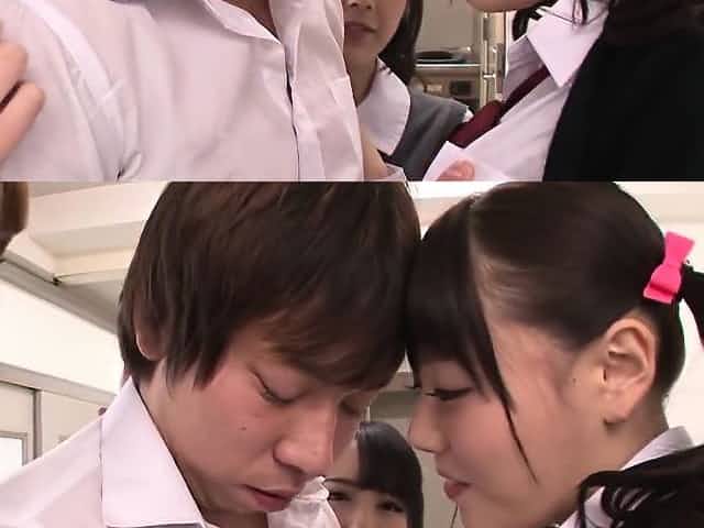 Japanese schoolgirls share a cock with teacher Uncensored