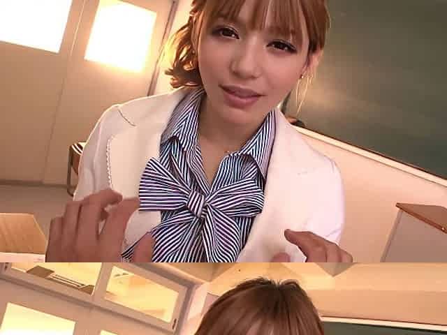 Japanese teacher Yui Komine cock sucking in the classroom uncensored