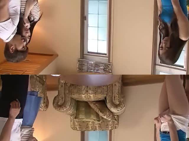 Japanese couple are so horny, watch her while the guy cuts her bathing suit.