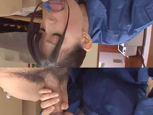 Japanese Maid Gets Her Mouth Filled with Load From Three Men After Sucking Their Dicks