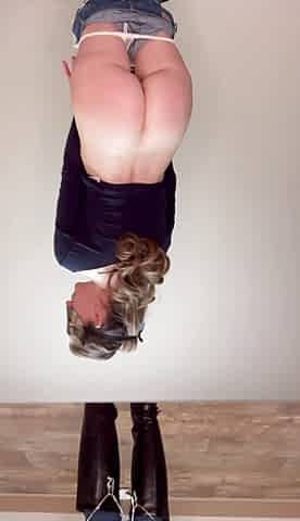Yin pee herself while getting spanked and instructed to clean her wet jeans