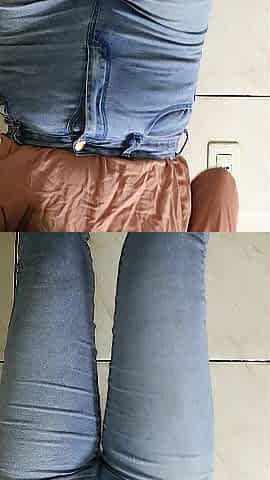 Self Wetting In Tight Jeans And Pantyhose And Getting Pissed On