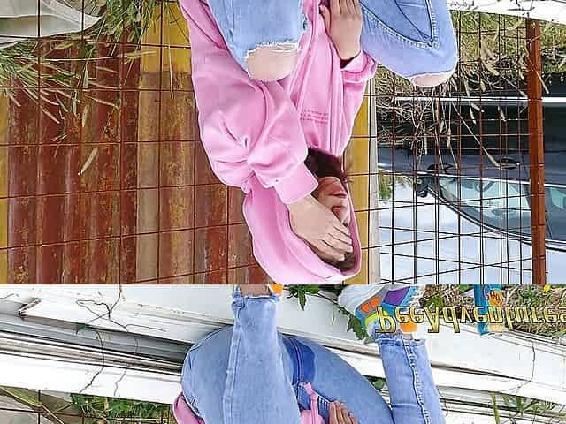 Girl with a hoodie pee trough her jeans