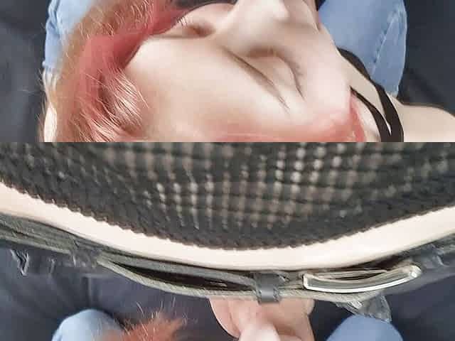 Casting pink haired girl in jeans - hard mouth fuck