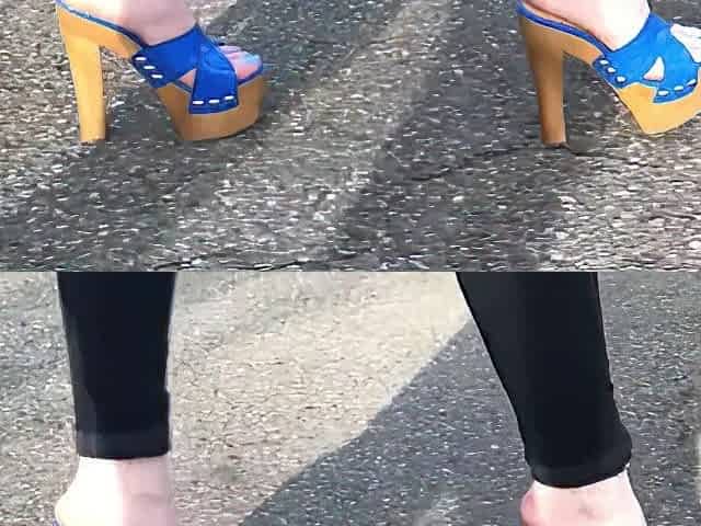 Amateur Babe Wearing Sexy Blue Wedges And Tight Jeans Down Town