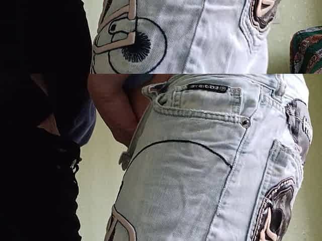 Big ass jeans, perfect for stashing her filthy secrets. Best homemade XXX act inside.