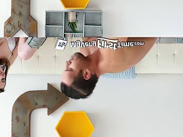 Horny blonde in a thong yelling as her shaved pussy is banged hardcore in the kitchen