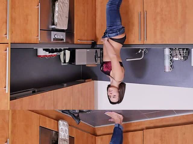 Horny MILF Jamie Ray drops her panties to play in the kitchen
