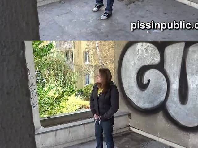 Ravishing Beauties in Constricted Jeans made it still in Time to Squat down and Pee