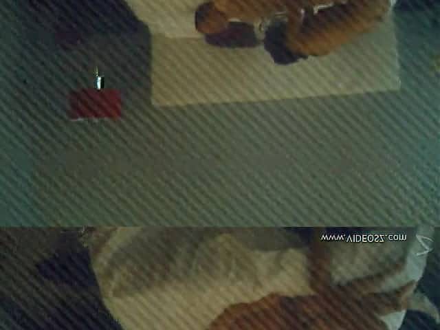 Amateur brunette sucks her man's cock in security cam reality clip