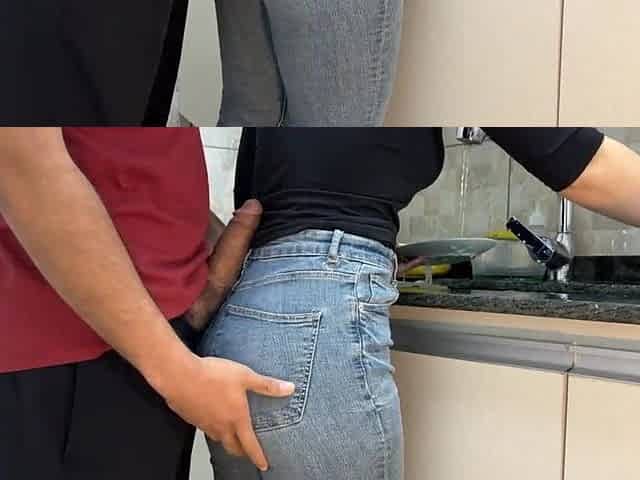 wshing dishes and getting cum