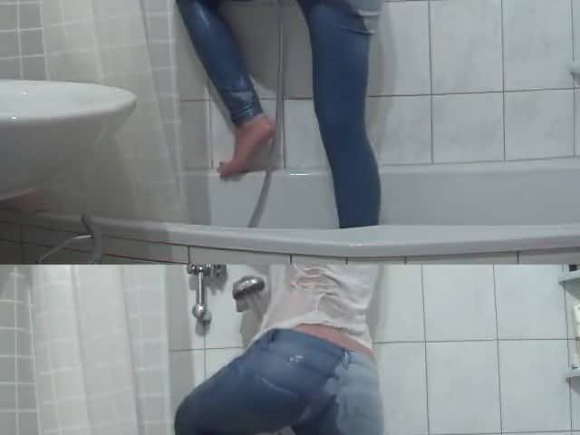 Sexy amateur puts on jeans and gets voyeured by spy cam