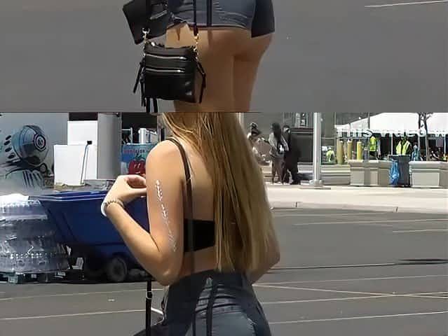 Street candid video of a fitty walking ass and pussy in tight jean shorts