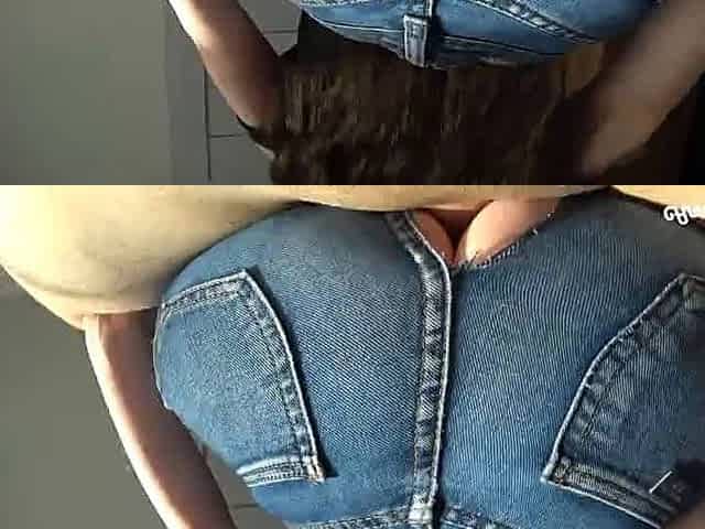 Hot Colleague Showing Off Constricted Jeans Panty Line