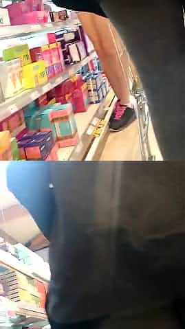 Cute teen ass in tiny thong and jeans shorts on spy cam