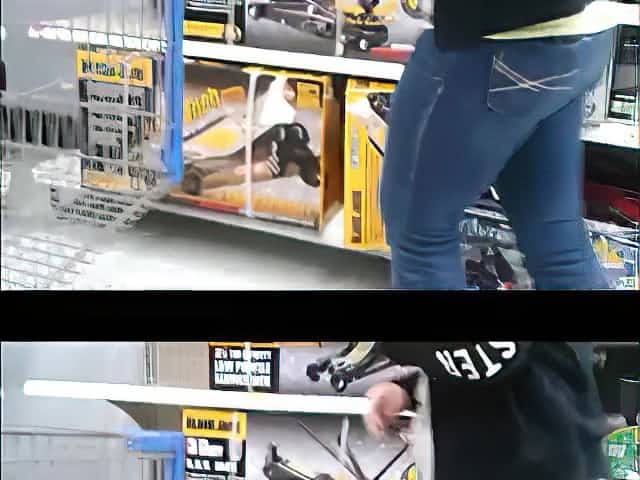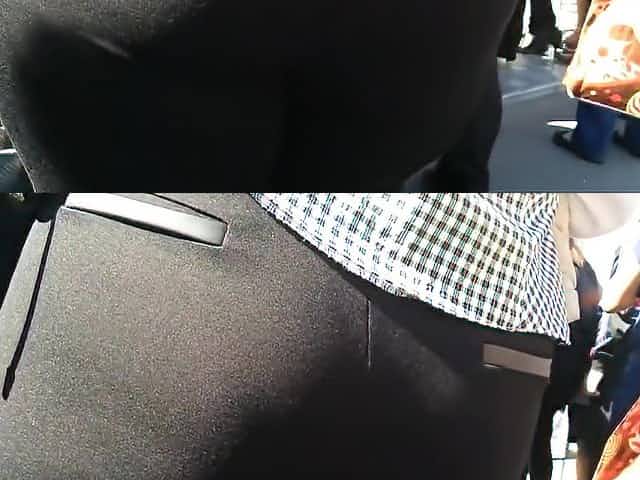 Angel ass in jeans miniskirt upskirted: Wearing panties or not?