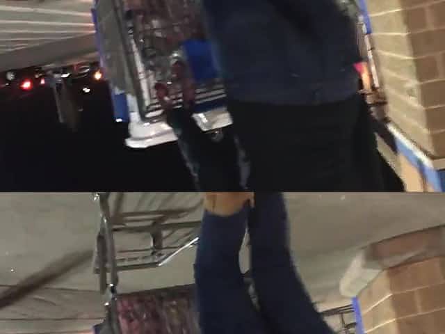Candid video shows a gorgeous hot woman in tight blue jeans.