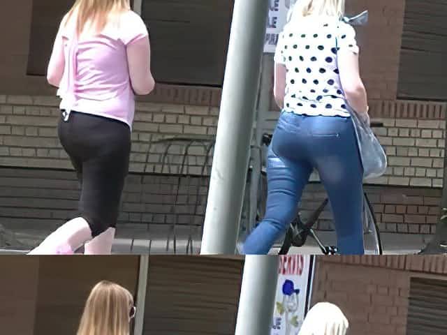 Tight jeans on tight round asses candid
