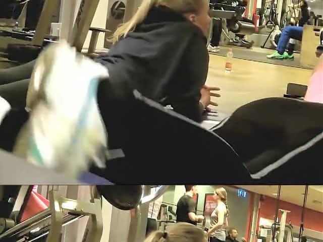 Blonde woman in tight sports outfit