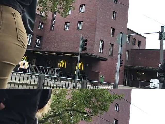 Fast moving MILF's ass in tight jeans