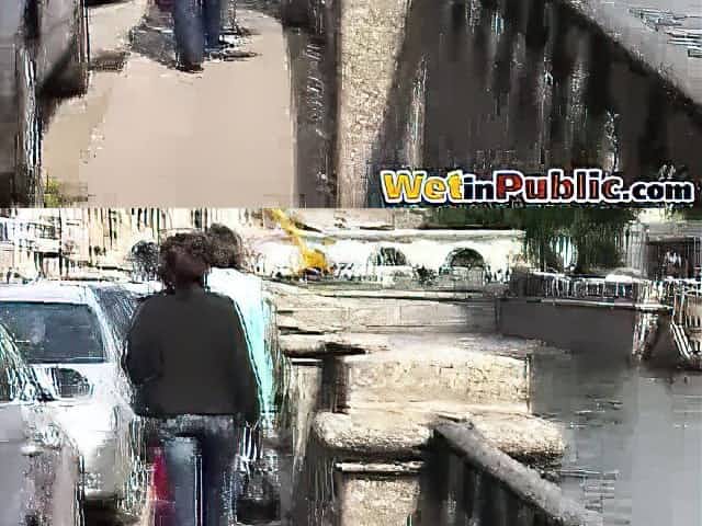 Spy cam video of a sexy girl in tight jeans standing at a t