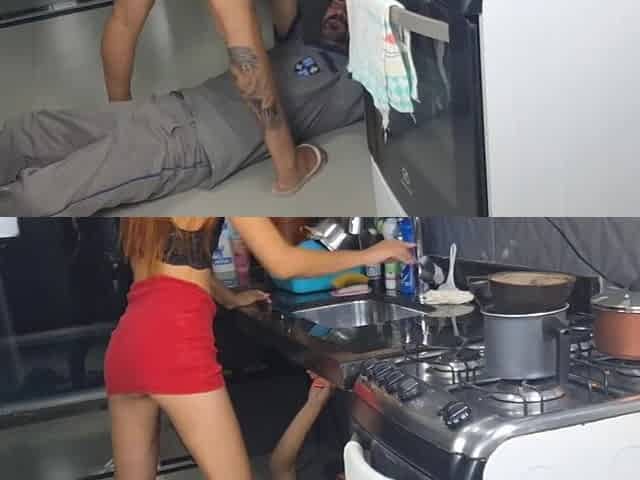 Leggy Latin in mini skirt gets railed right in the kitchen - Amateur Porn