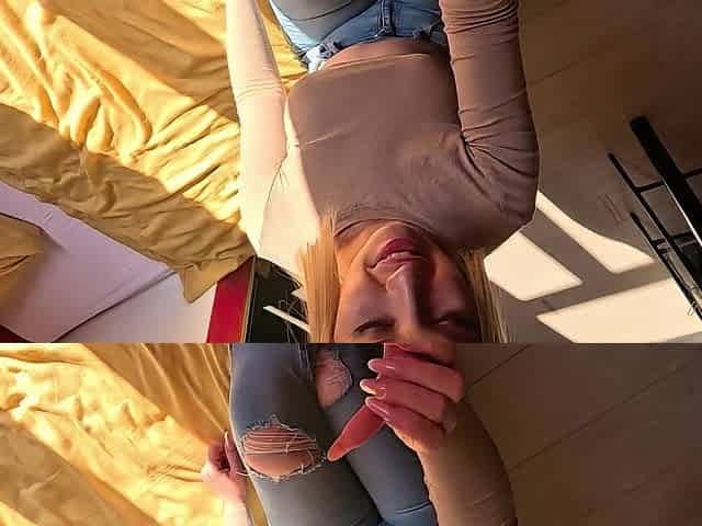 Sexually Excited Blond College Sweetheart in Constricted Jeans Widening Cheeks!