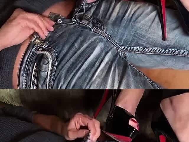 Naughty Babe Pissing In Her Denim Jeans Solo