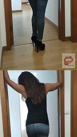 Jeans petticoat and ebony hose-Hot walk large butt two