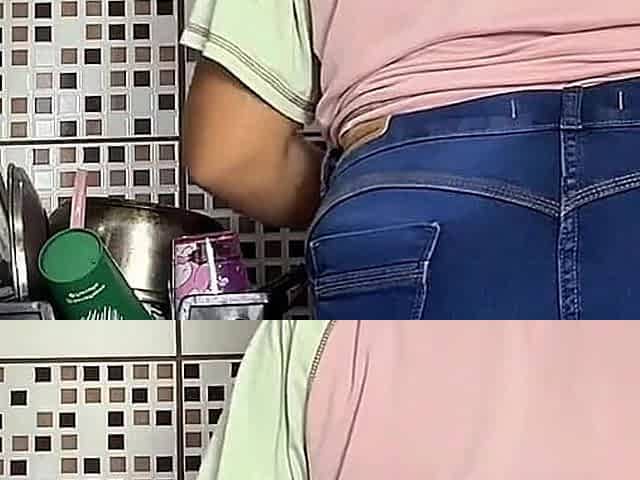 Curvy Girl Farting in Jeans While Doing the Dishes