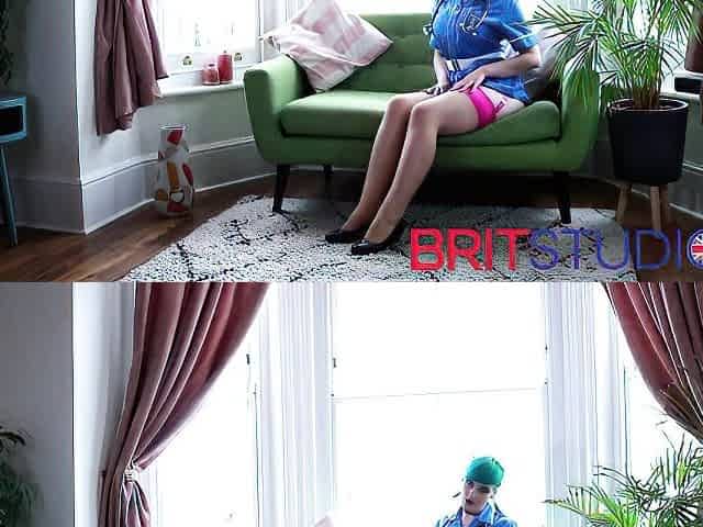 Mean Brenna Pepper Wants to Torment & Jerk Off Lance's Cock, Brenna Pepper is wearing a leotard, shiny tights and white socks. S