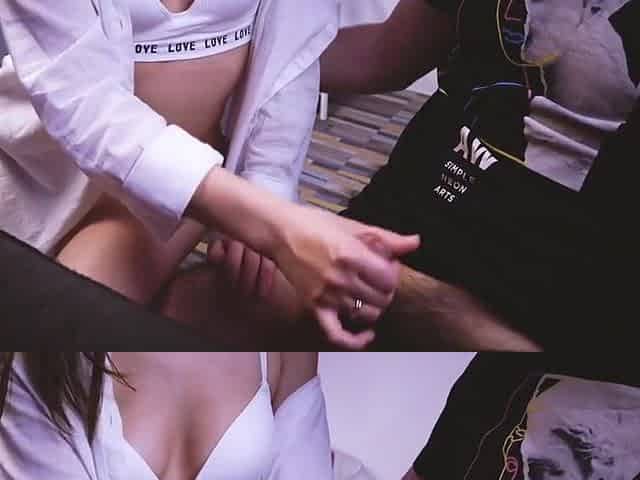 Lingerie Goddess Jerking Guy At Parlor As Special Service