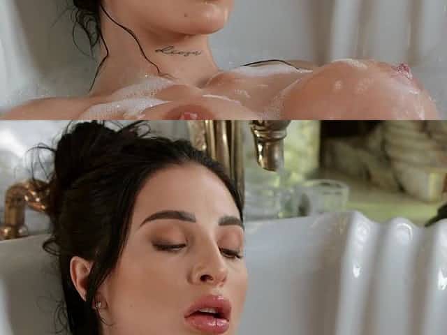Azul Hermosa wanks shaved pussy in the bath