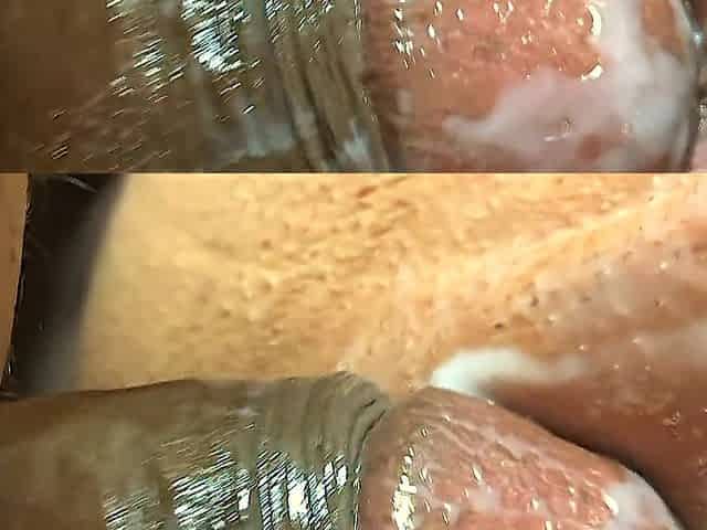 Jacking off in a public shitter cumming with semen into a glass - worthy gulp