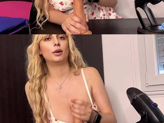 JOI ITALIANO - Segretaria bionda blasfema ti dice come sborrare mentre aspetta il capo