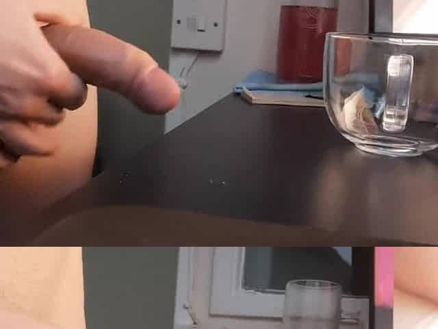 Wanking a load into a glass mug