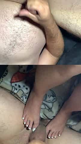 Feet wank beauty gets her toes sucked on after riding pecker