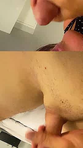 Cumshot amateur MILF suck and jerks dude in the bedroom