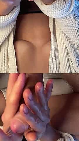 This guy Plays With My Bazookas And Cums On My Fishnet Brassiere