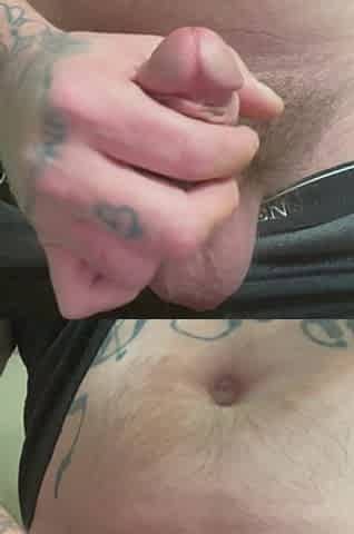 Tattooed Guy Bathroom Jerk Session Huge Cumshot
