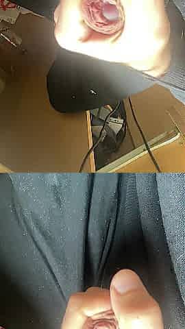 Wanking and cumming with my dick on the desk