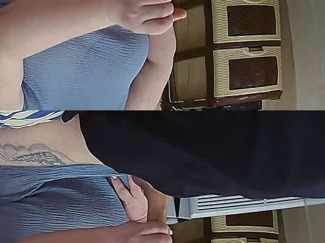 My husband jerking hidden front of my step mom under a table during their talk.