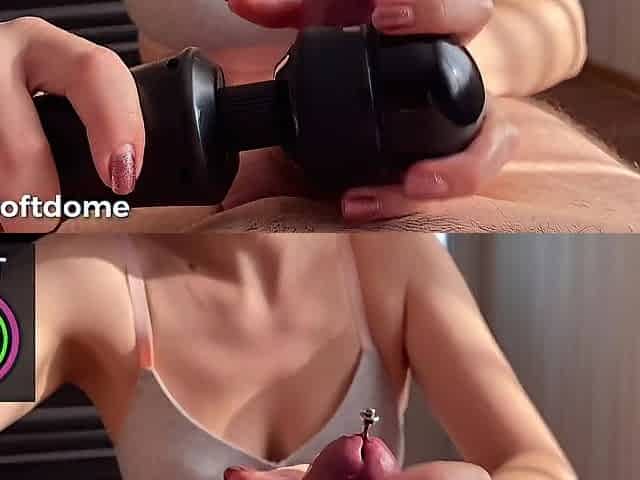 Cockwanking small boobs bae jerks oiled cock in POV
