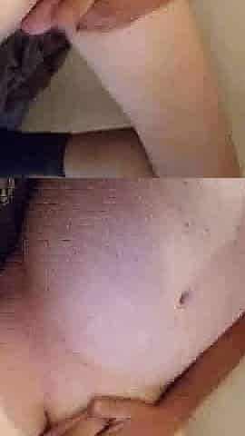 Squeezing my juicy big natural tits and stroking a shaved pussy