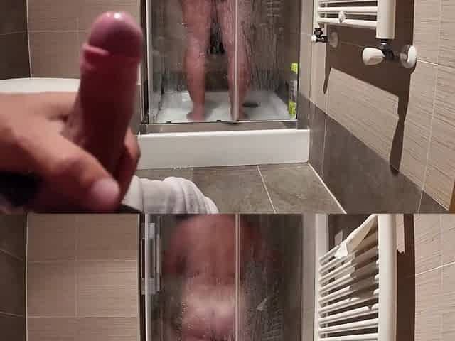 Stepson Comes To His Curvy Stepmom In The Shower And Starts Jerking Off