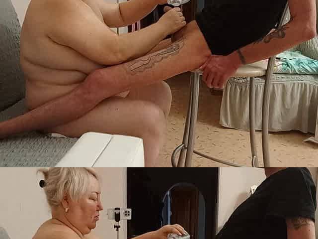 Footjob with my neighbour they truly like to jerk me off with their feet and show me their snatch
