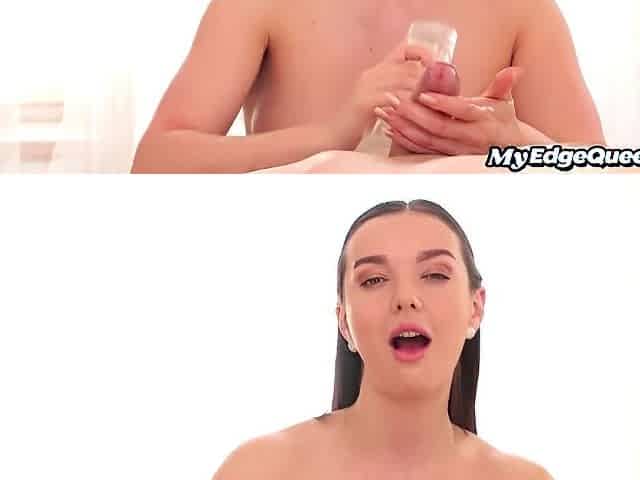A With Beautiful Natural Tits Jerks Off Her Boyfriend. His Hot Dick Teases Him With Her Wet Pussy - Gorgeous Girl