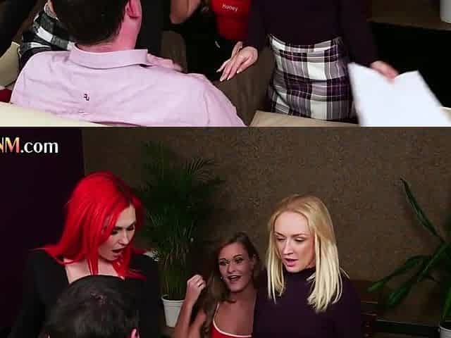 Cockhungry CFNM babes wanking lucky guy