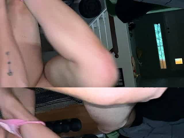 Amateur housewife pussyrubs while jerking POV
