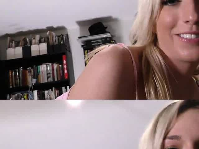 Non stop blonde with big boobs cock jerks off on the bed